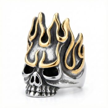 Sculpt Rings™ Fiery Skull Ring, Gothic Biker Jewelry for Men, Stainless Steel Band
