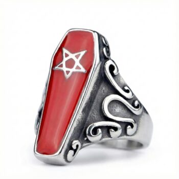 Sculpt Rings™ Gothic Coffin Ring – Red Pentagram Stainless Steel Band