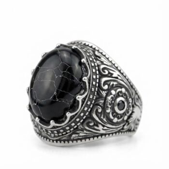 Sculpt Rings™ Black Stone Stainless Steel Statement Ring, Geometric Gothic Design