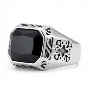 Sculpt Rings™ Black Onyx Steel Signet Ring – Gothic, Vintage Style